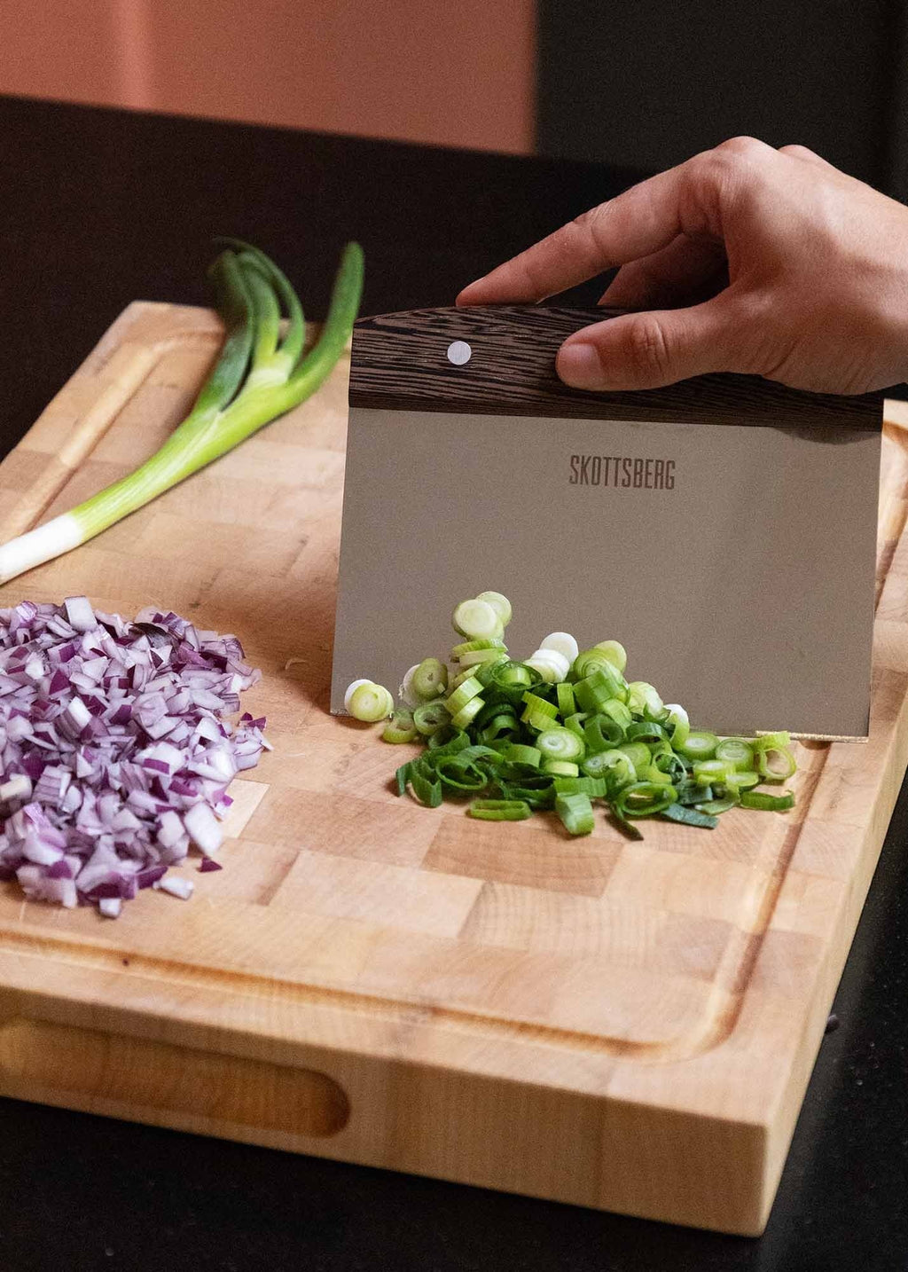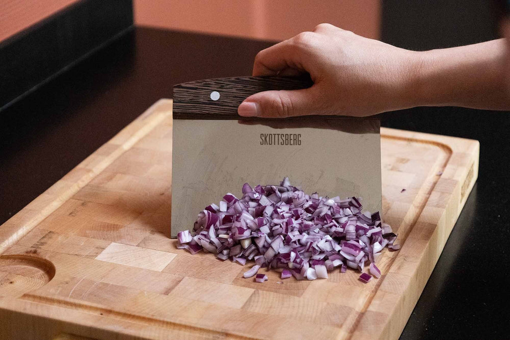 Featuring a sturdy, FSC-certified wooden handle, this bench scraper ensures a comfortable grip. It has a dual measurement system, with inches on one side and centimeters on the other, allowing for precise measurements. Perfect for cutting and portioning dough, scraping surfaces, and easily transferring chopped ingredients to your bowl or pan.