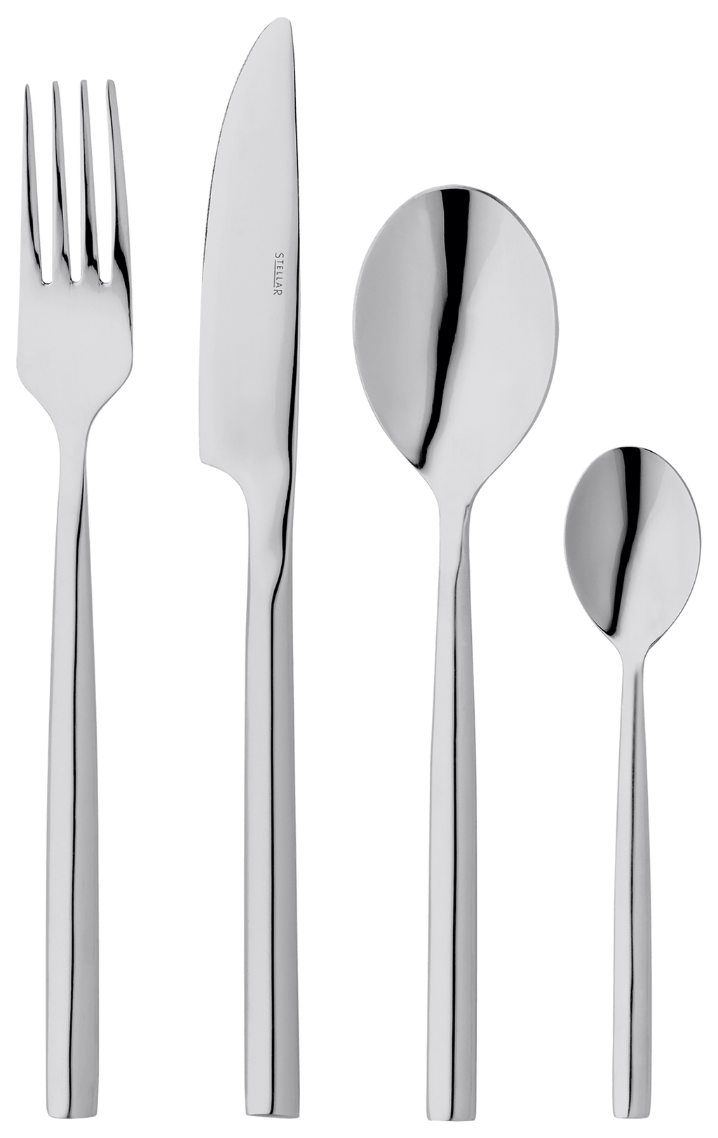 This Stellar Rochester Cutlery Set is an elegant addition to any table. This set contains 6 table knives, 6 table forks, 6 dessert spoons, 6 tea spoons. Crafted from high-quality mirror-polished stainless steel, this beautiful cutlery is perfect to give or keep for yourself and will last a lifetime.