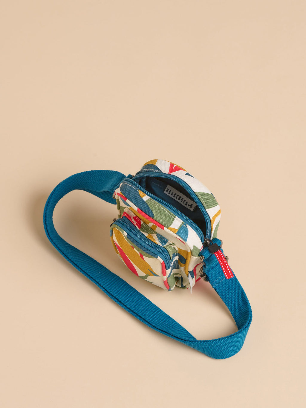 When you want to travel light, this small but perfectly formed bag is the answer. Made from canvas in gorgeous bright print, it will hold all your essentials, with a zip front pocket, back pocket secured with a magnetic popper, and main section with an internal divider and zip opening.
