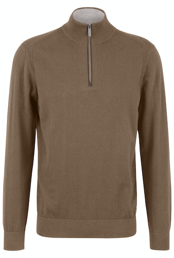 Cotton/cashmere 1/4 Zip Jumper - Camel