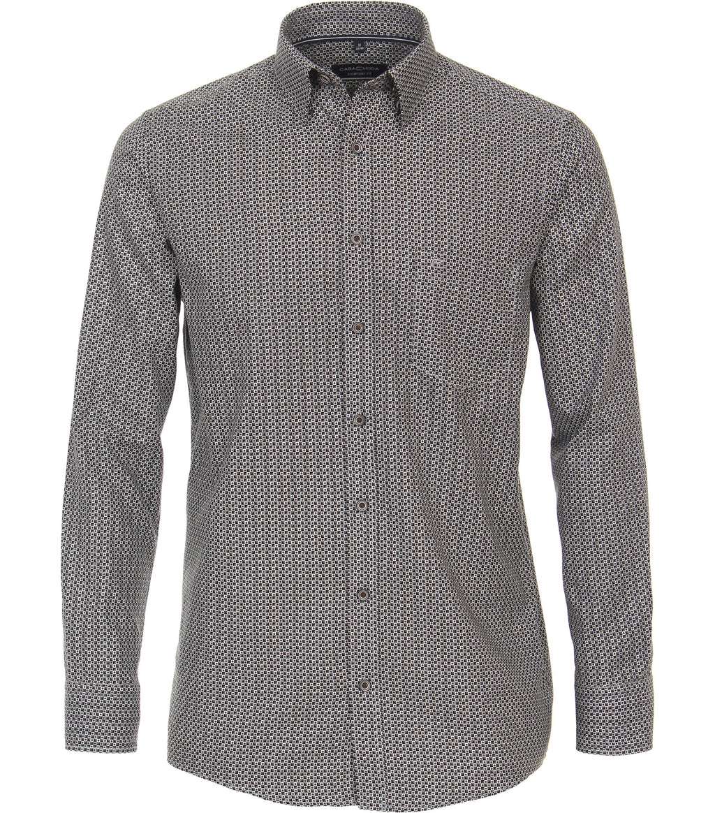 - Button down collar.