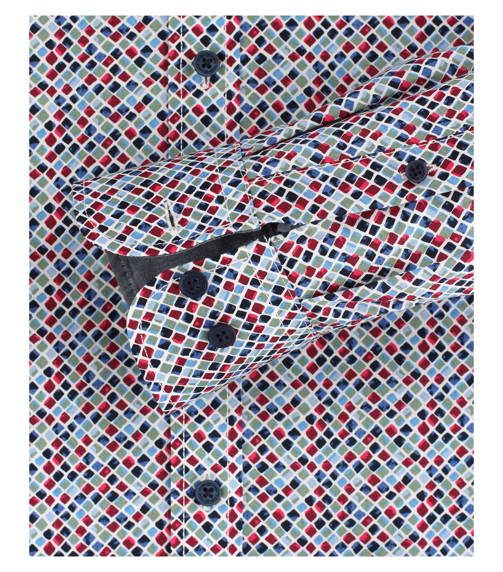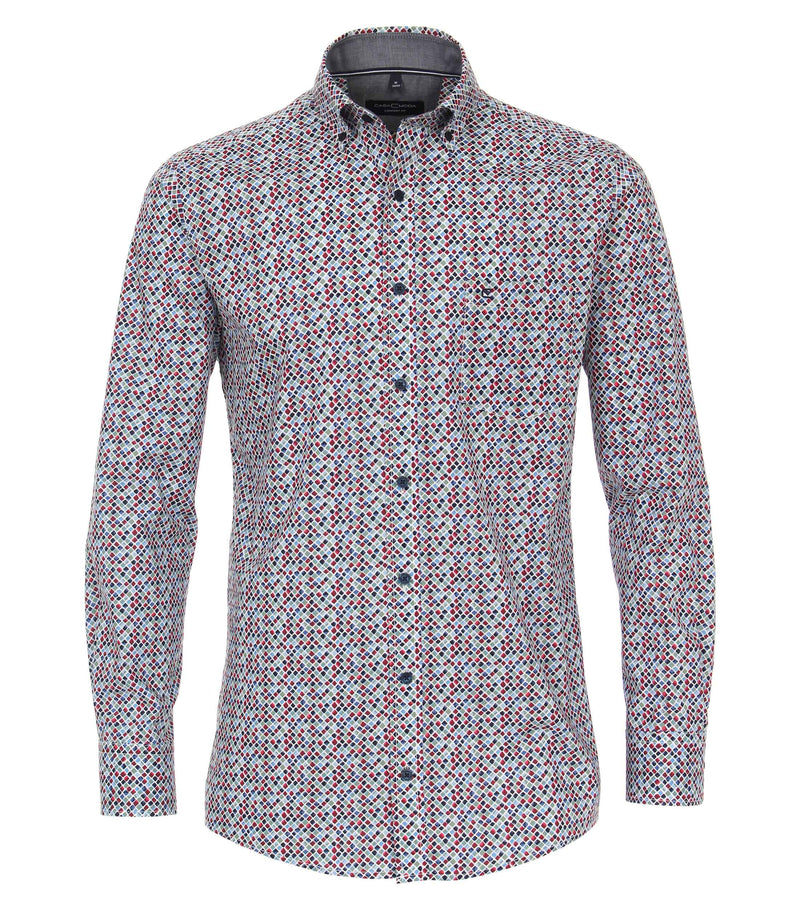 - Button down collar.