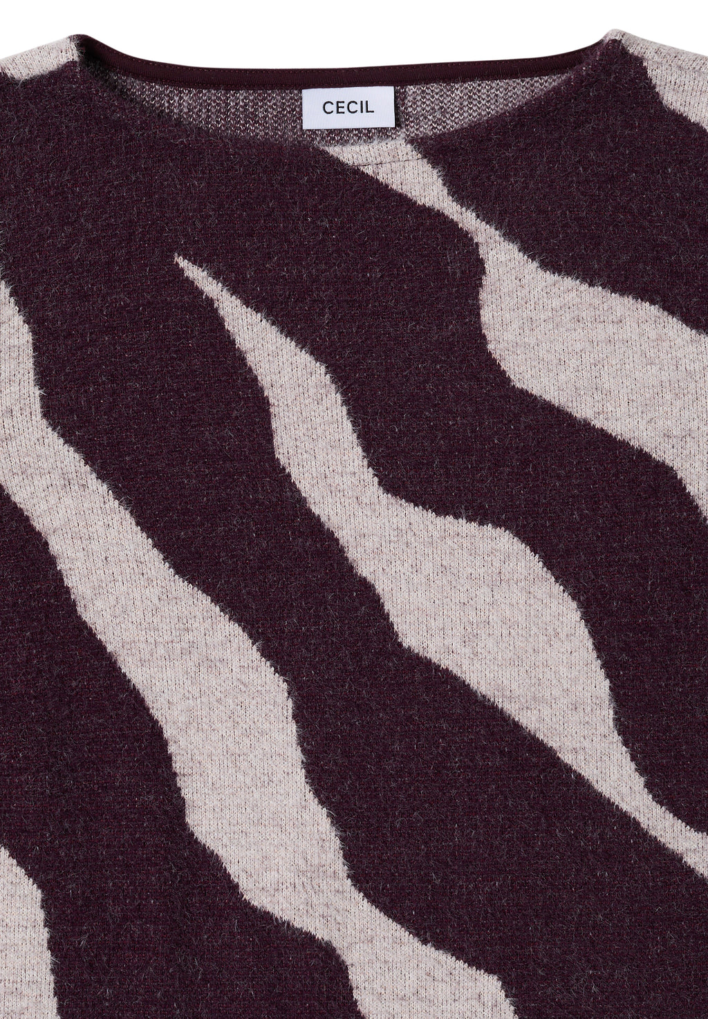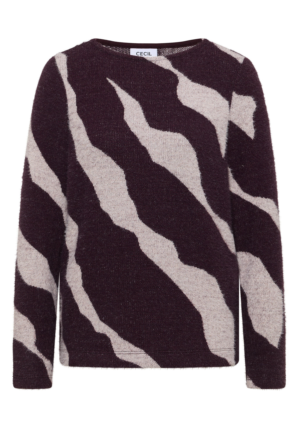Big Print Feather Yarn T-Shirt - Eggplant Red