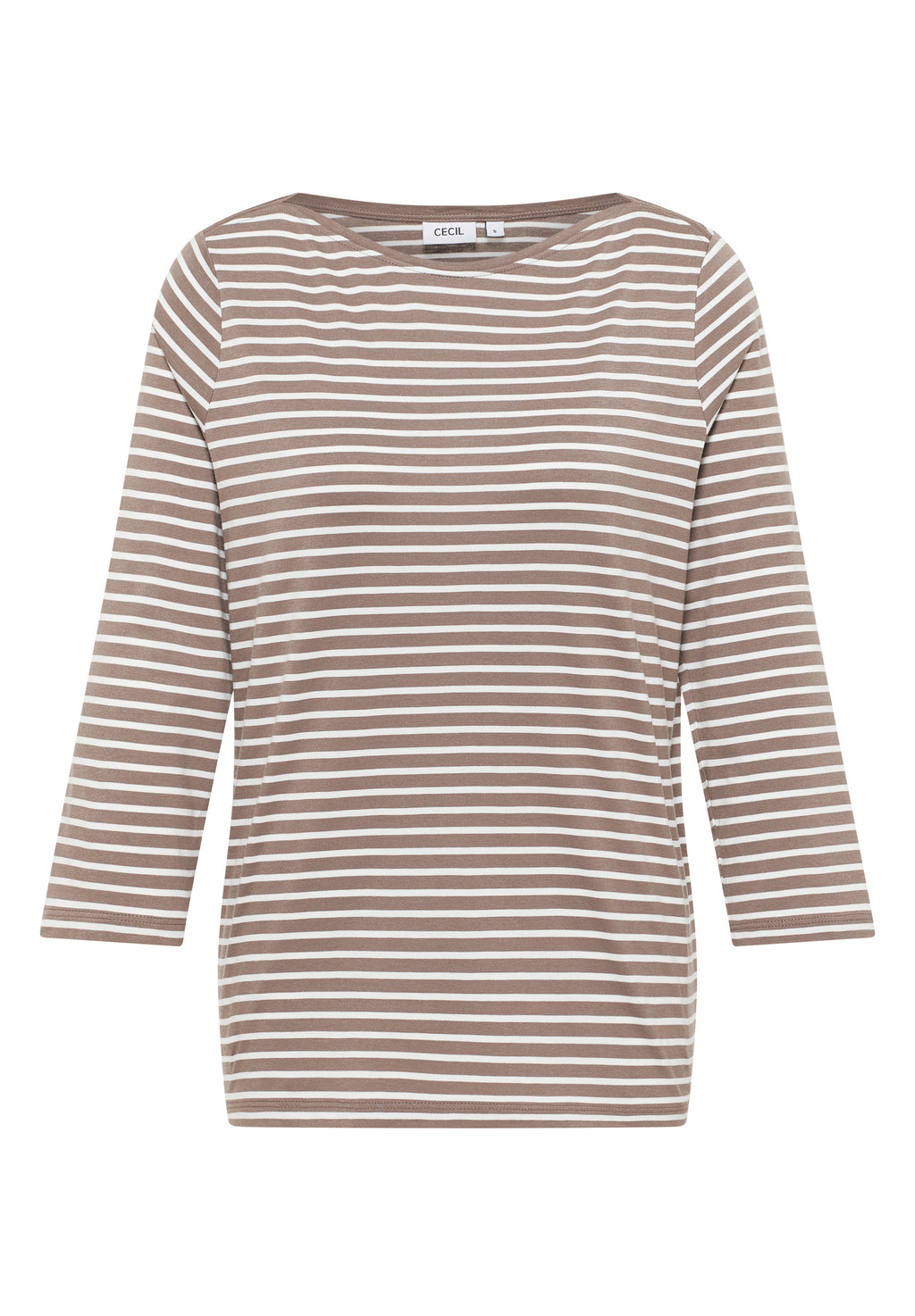 Boatneck Basic Stripe T-Shirt - Cocoa Taupe