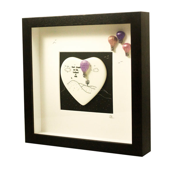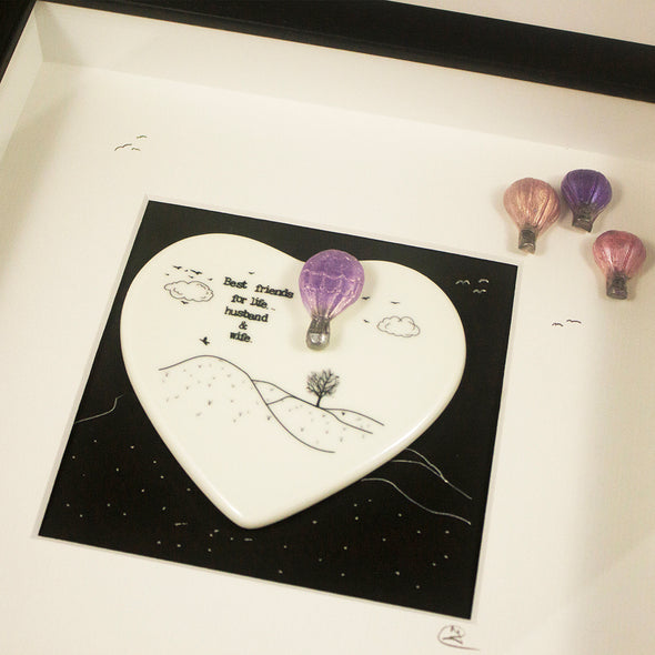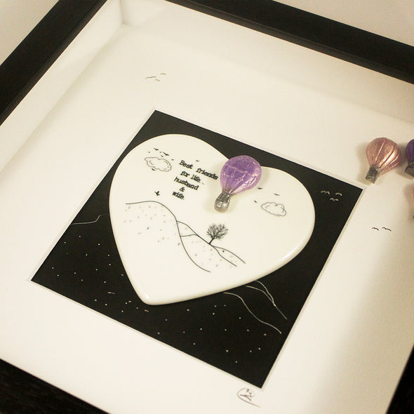 A beautiful framed ceramic piece in our delicate heart-shaped ceramic design. Comes ready to hang, framed in our Black, deep wooden frame and signed by Fiona.