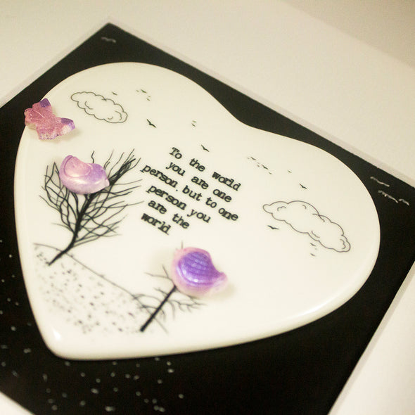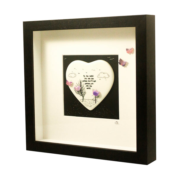 A beautiful framed ceramic piece in our delicate heart-shaped ceramic design. Comes ready to hang, framed in our Black, deep wooden frame and signed by Fiona.