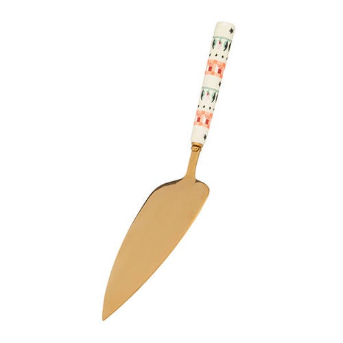 Ideal for serving slices of delicious home made cakes and bakes, with a stylish printed ceramic handle that brings a touch of artistry enhance by the gold effect.