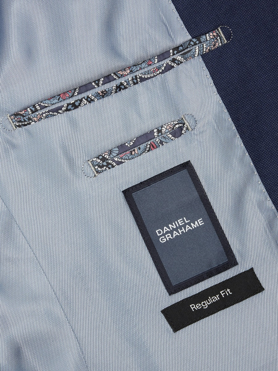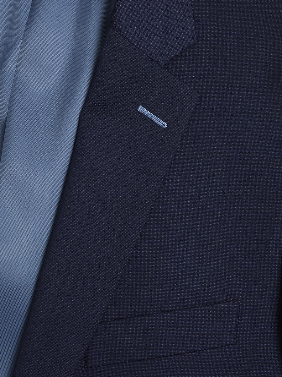 - Slim notched lapel.