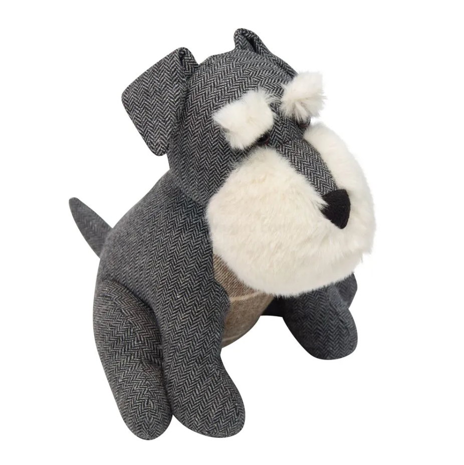 A Malini cutest schnauzer doorstop in herringbone fabric.