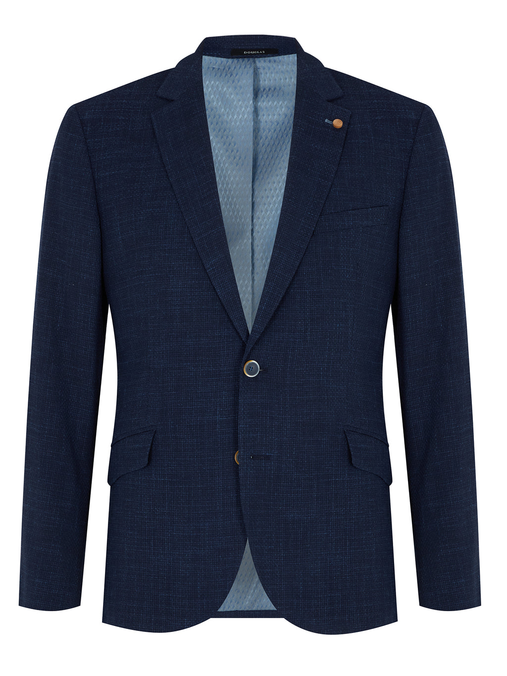 • Slim notched lapel.