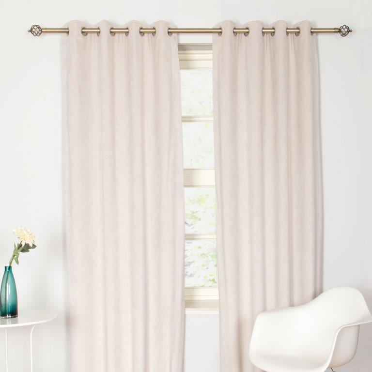 Velvet interlined readymade curtains with eyelet heading.