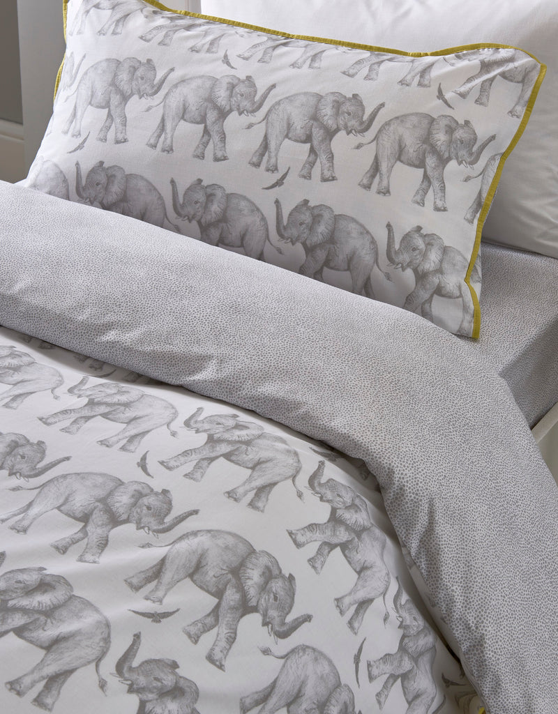 Inspired by her children's love of safari animals, the Samantha Faiers Elephant Trail duvet cover set will make both kids and parents happy. The simple repeat pattern elephant image has a touch of sophistication about it, whilst still being perfect for a young child's room.