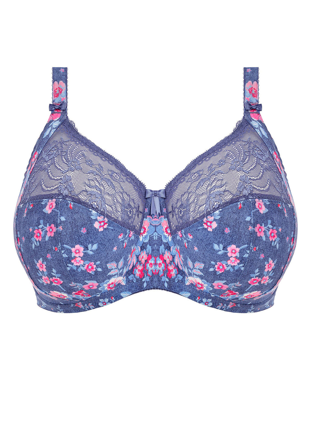 - Banded underwire bra with three-section cup plus side support panel for a forward shape