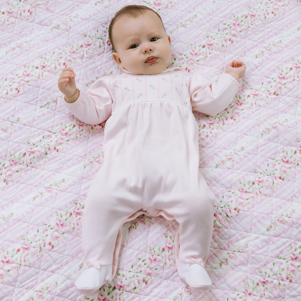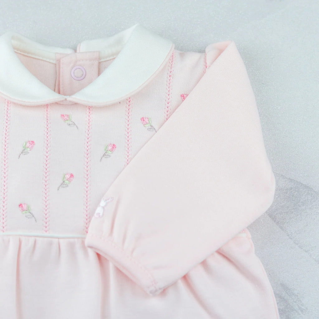 - Full back and leg opening with poppers for easy changing.