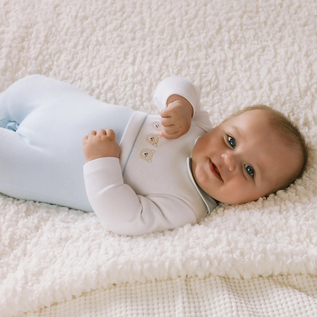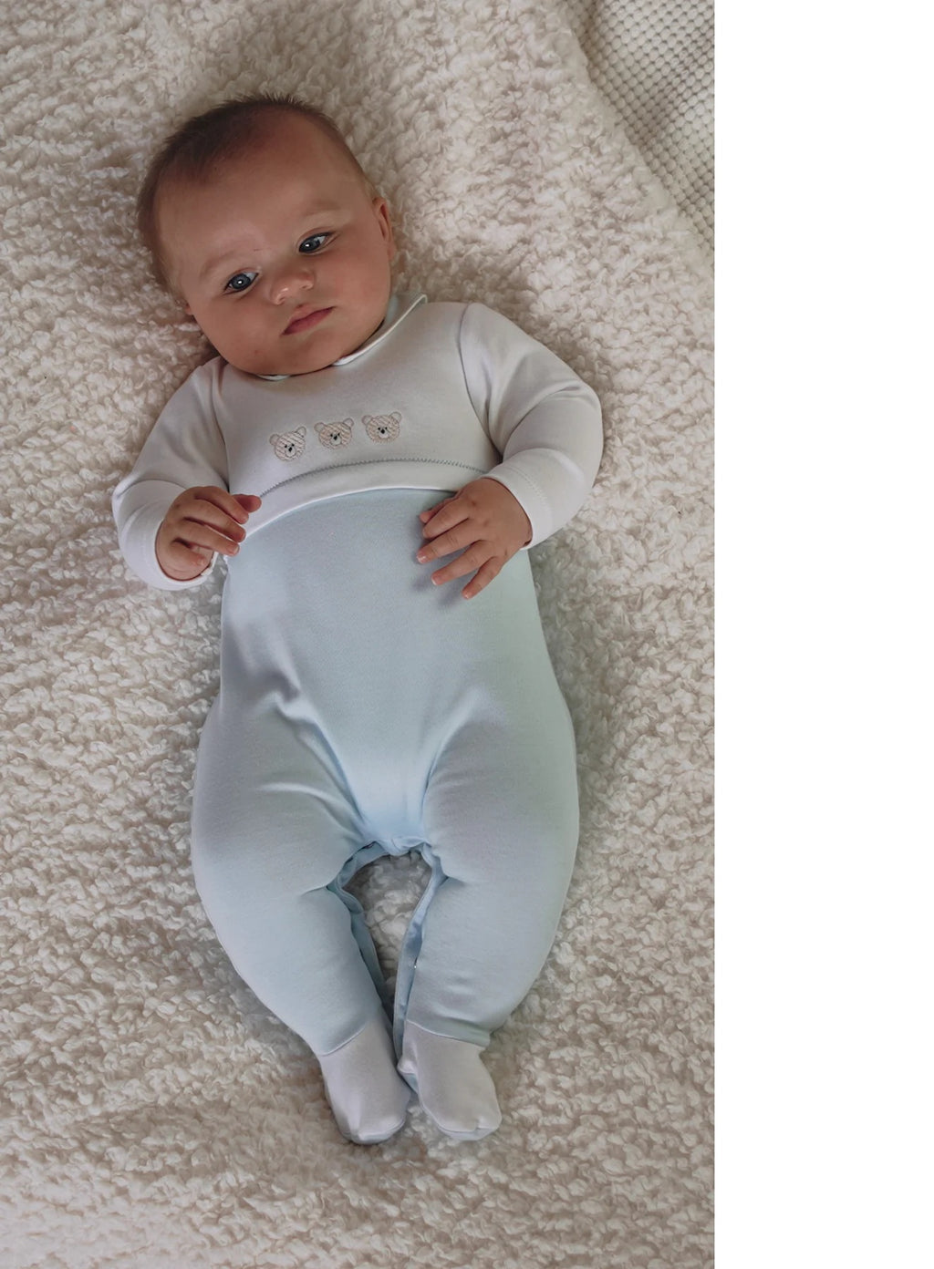 - Full back and leg opening with poppers for easy changing.