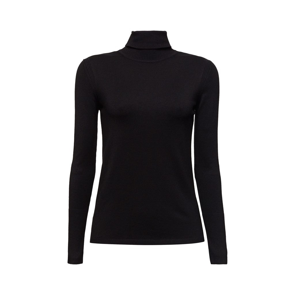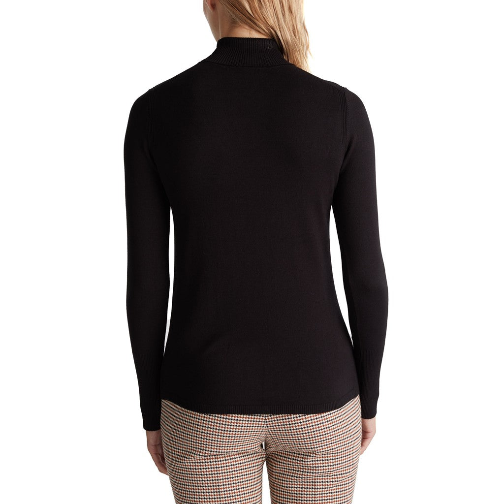 - Ribbed polo neckline.