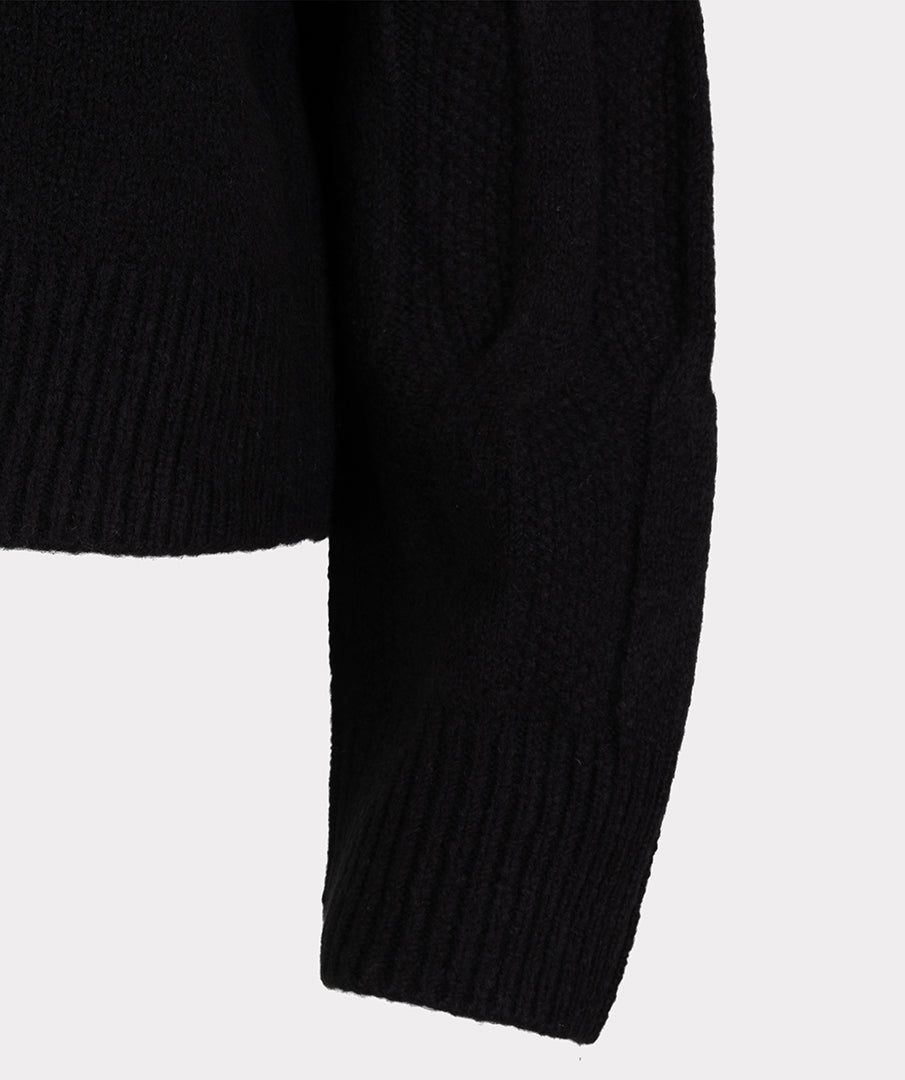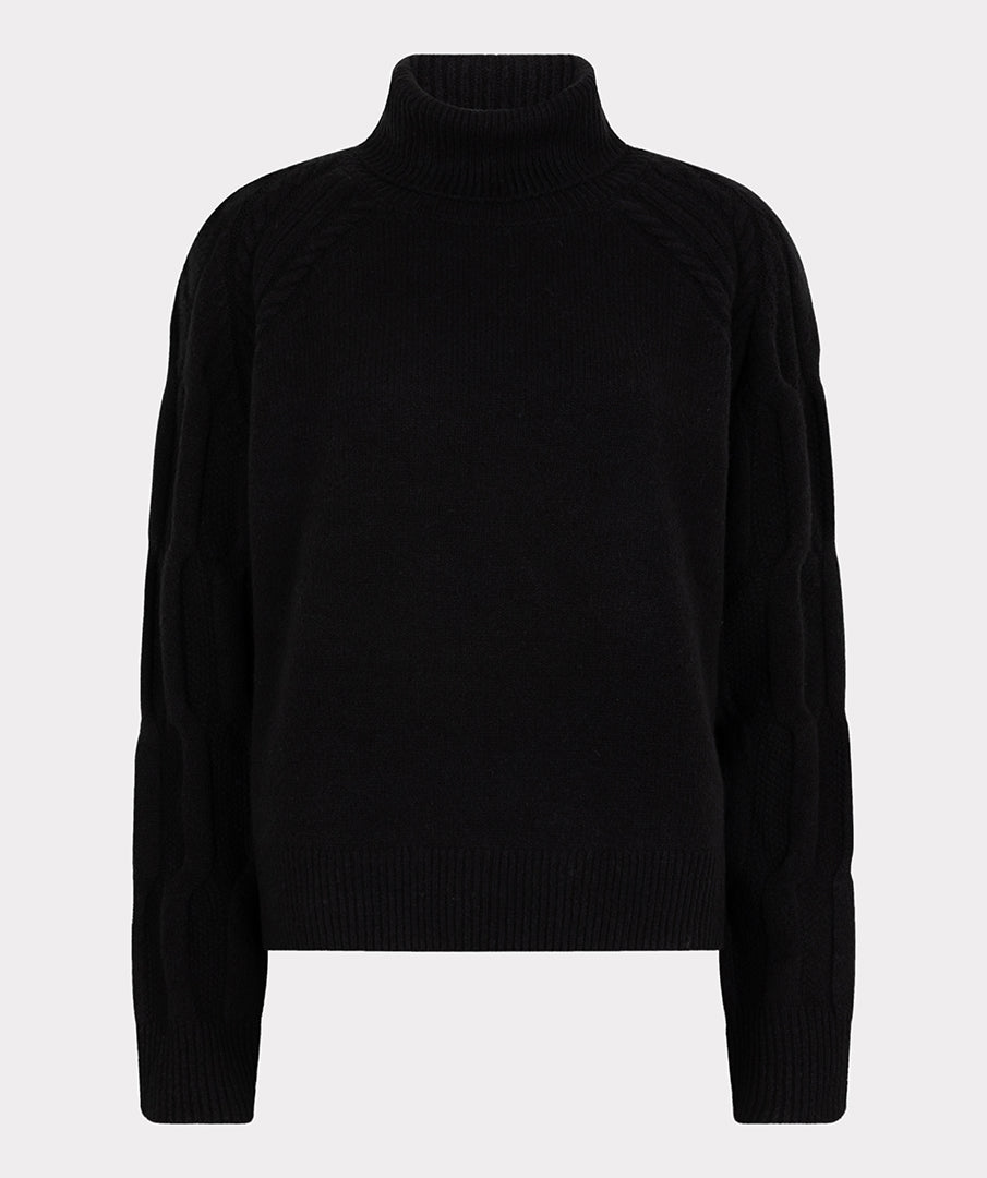 - Loose-fitting turtleneck sweater