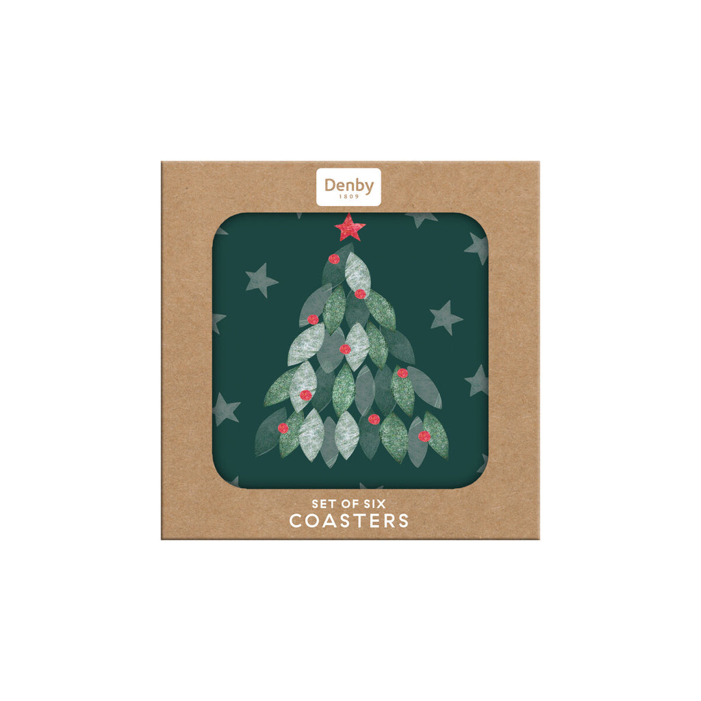 Start the festive season off right with this set of 6 Evergreen coasters. These mats will transform your table setting.