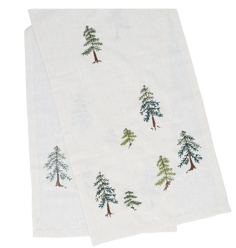 Achieve the perfect holiday ambiance with this festive table runner. Expertly designed to elevate your home décor, this runner is sure to impress your guests.  Providing a luxurious touch while adding a touch of festive cheer with its embroidered trees.