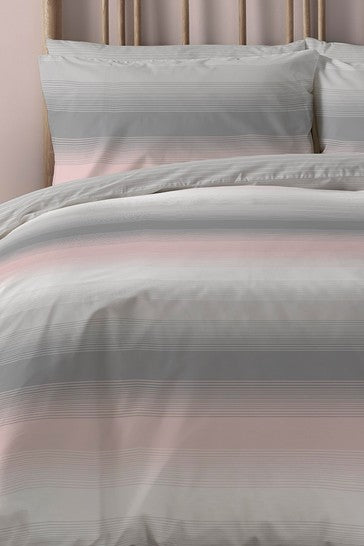A bold, modern statement piece, the Copenhagen Faded Stripe duvet cover set brings stylish, on-trend design into your bedroom. The sharp colourway combines silver-greys, whites and blush pinks to provide depth and warmth to the eyecatching yet simple stripe pattern.