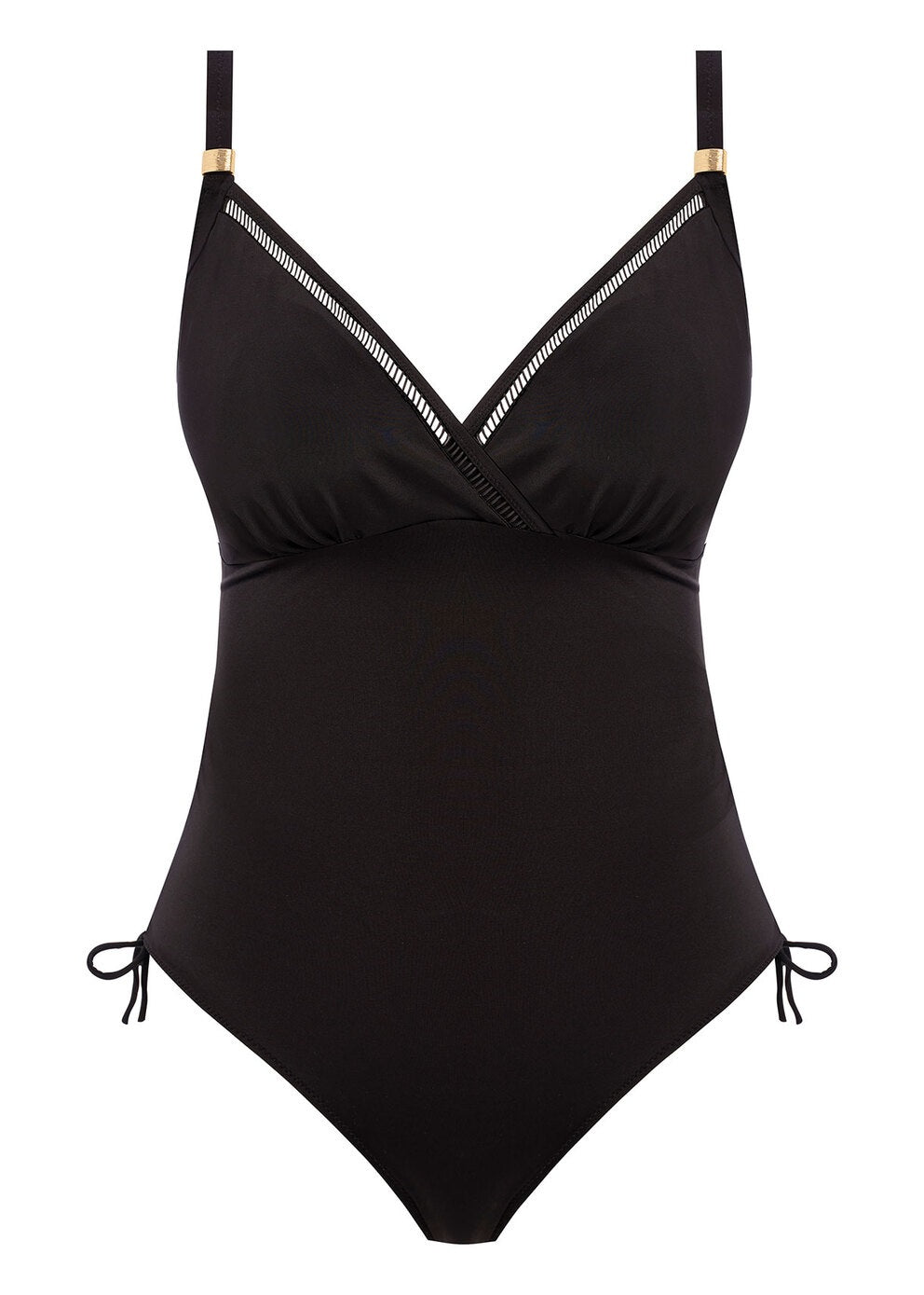 - Adjustable tie sides offer ruching effect to flatter tummy area and variation of body length