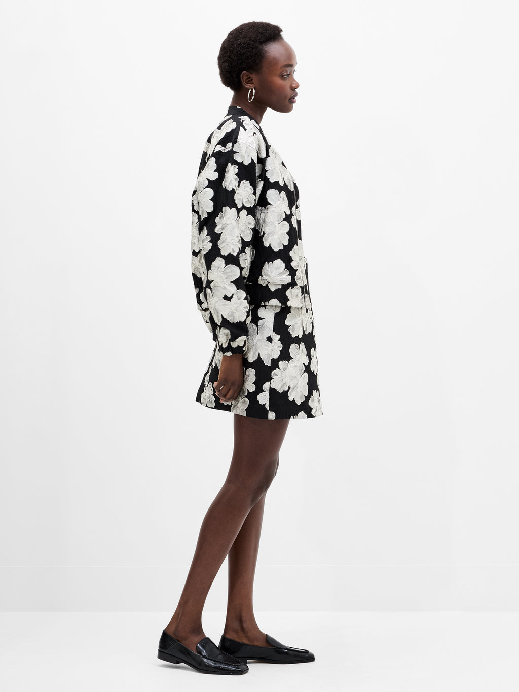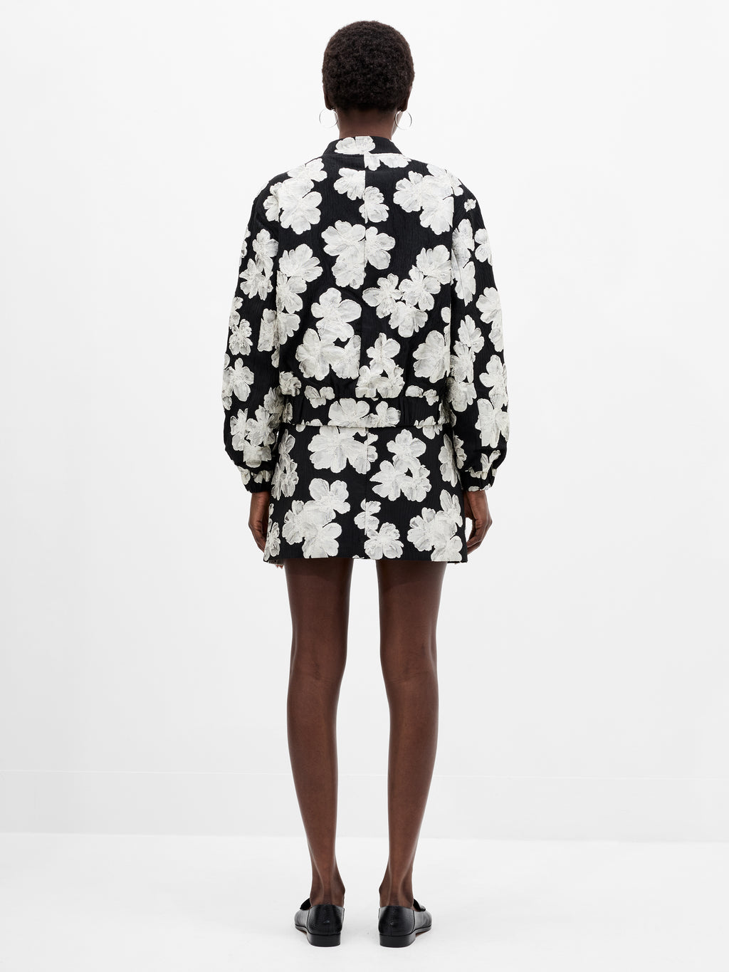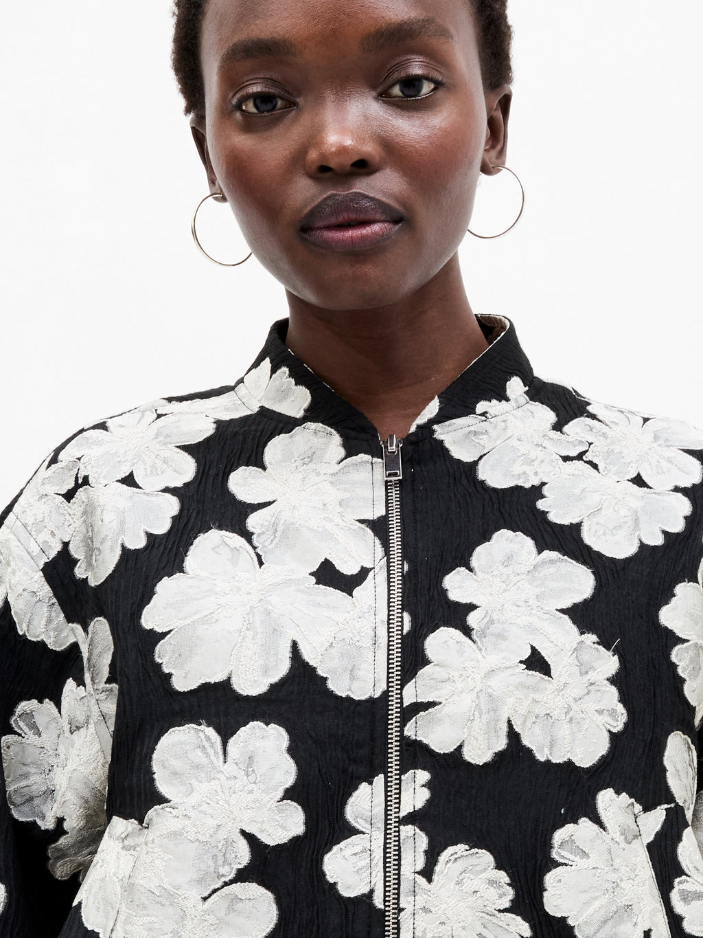Lora Poly Jacquard Bomber Jacket - Porcelain Cream/black