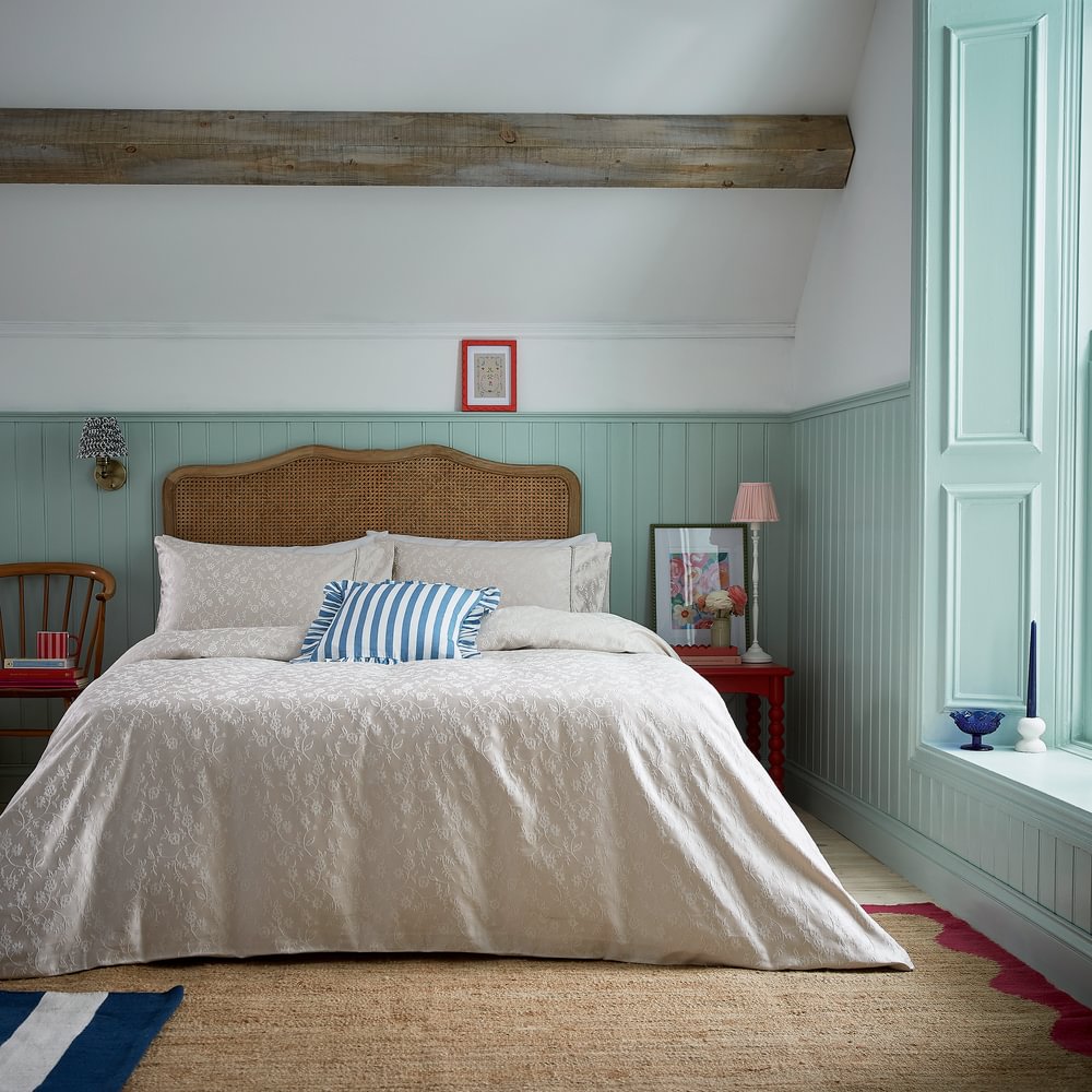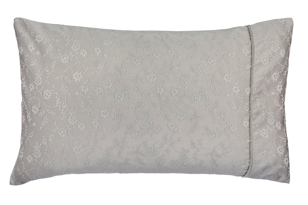This elegant jacquard weave bedding showcases a delicate floral trail that gently winds across the duvet cover and matching pillowcases. Finished with a rope insert detail across the duvet cover and along the pillowcase cuff with a plain dye reverse for a clean contrast, it’s a timeless choice with a subtle touch of texture.