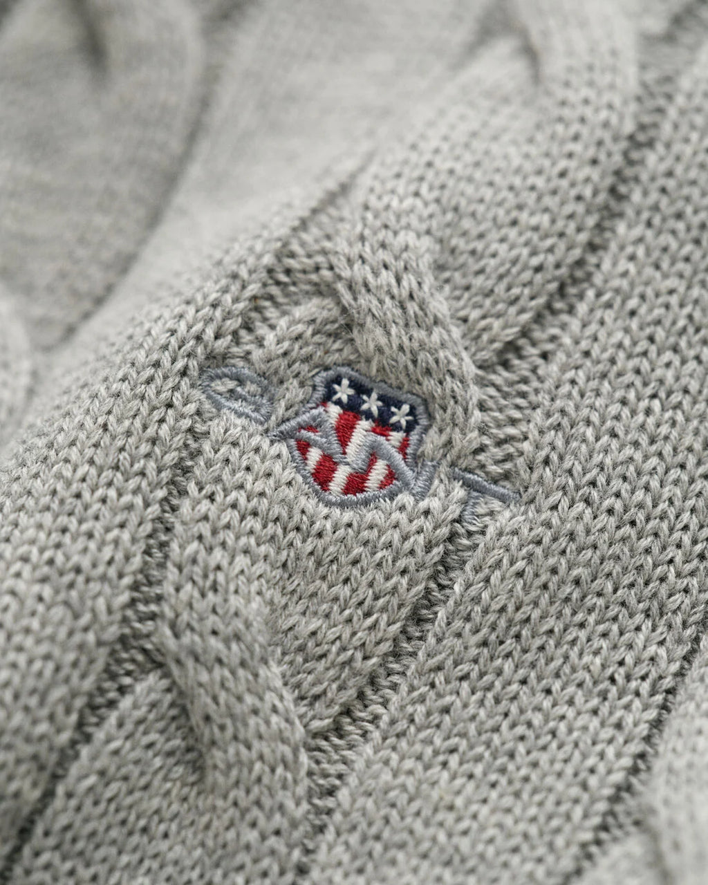 Cotton Cable Half Zip Sweatshirt - Grey Melange