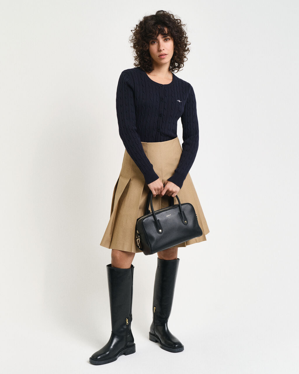 • Cable knit material.