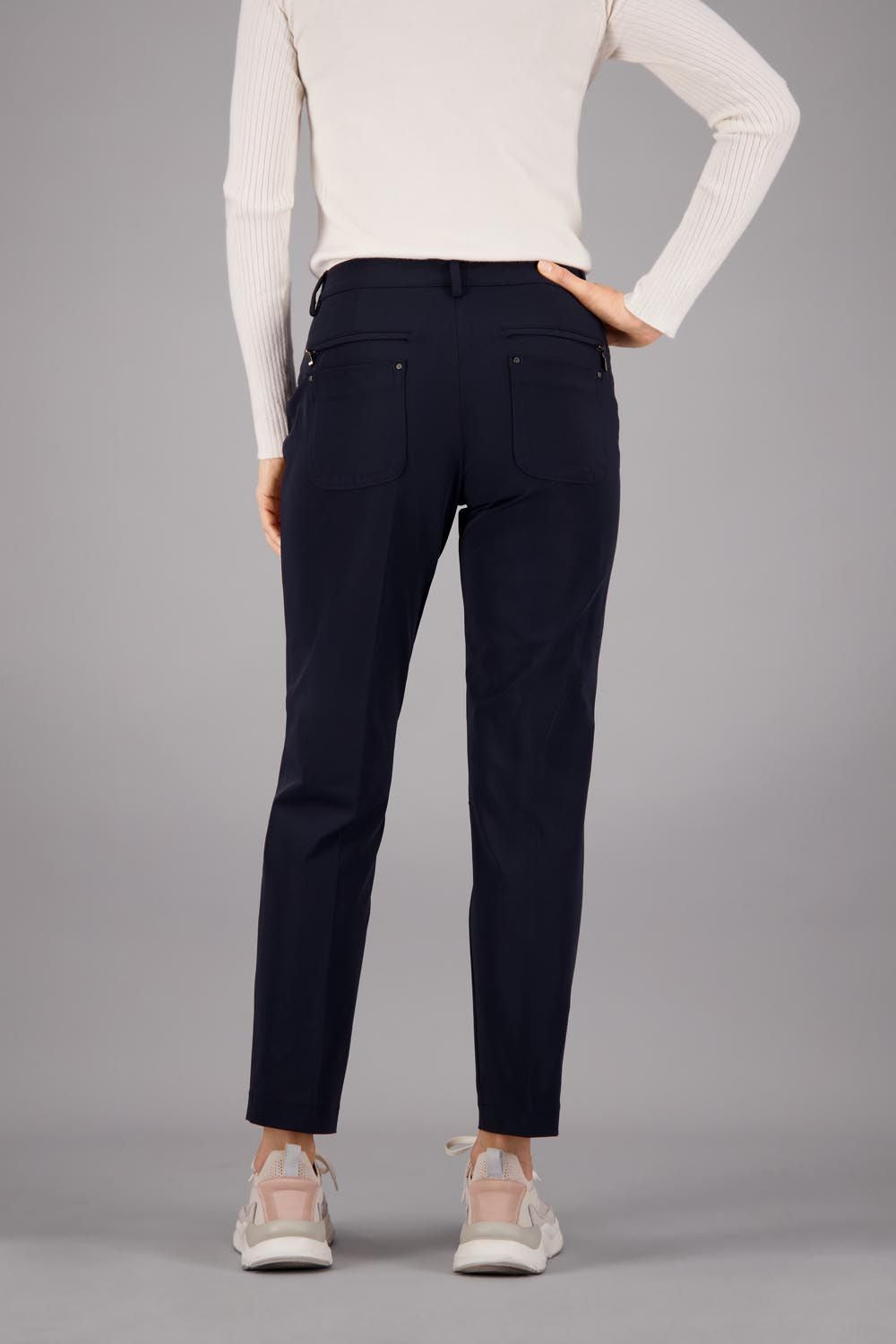 - Mid-rise waist.