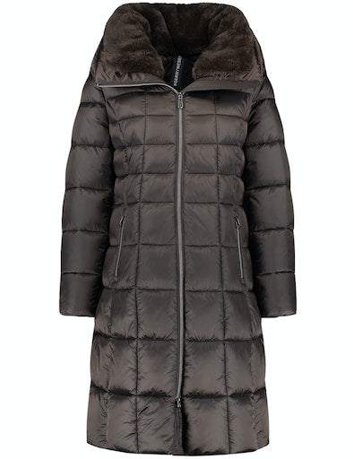 - Faux fur lined collar.