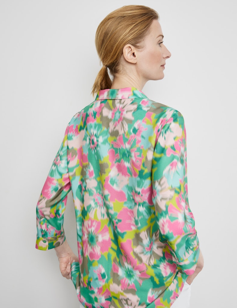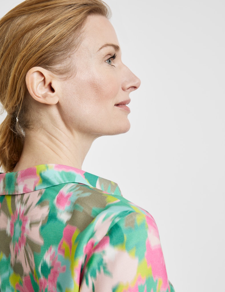 - All-over abstract floral print.