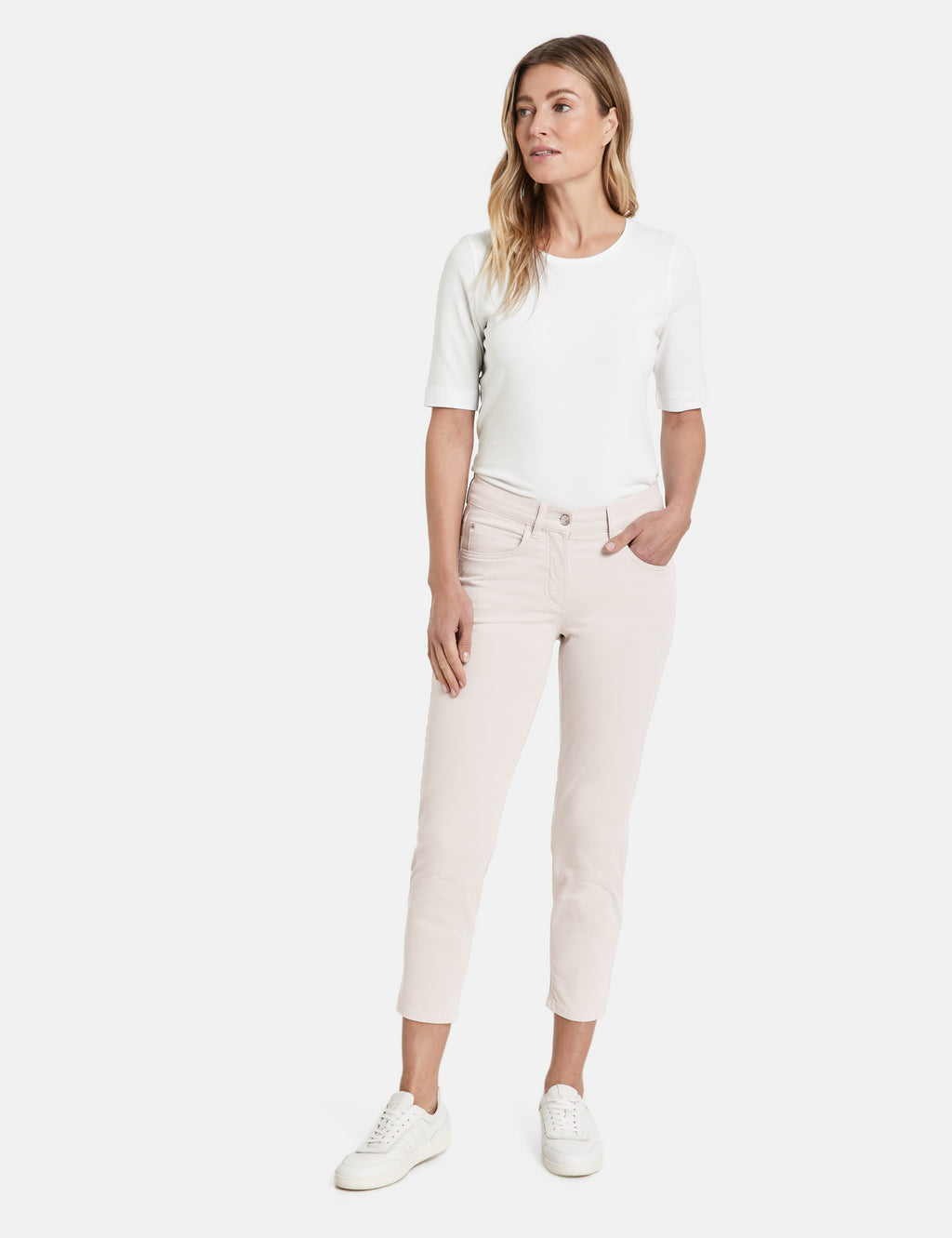 Materials: 74% cotton, 11% polyester, 11% elastomultiester, 4% elastane.