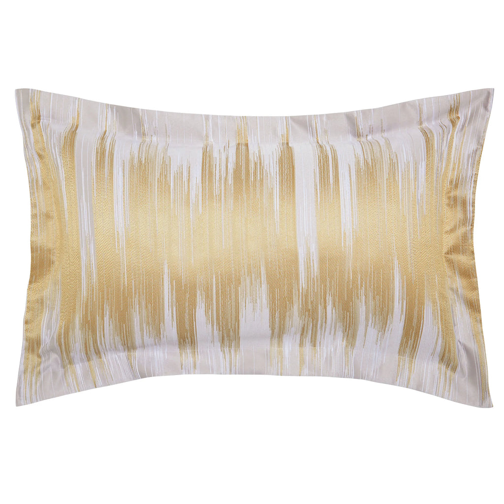 The Motion oxford pillowcase features a gold painterly Ikat stripe woven on a pale grey ground.