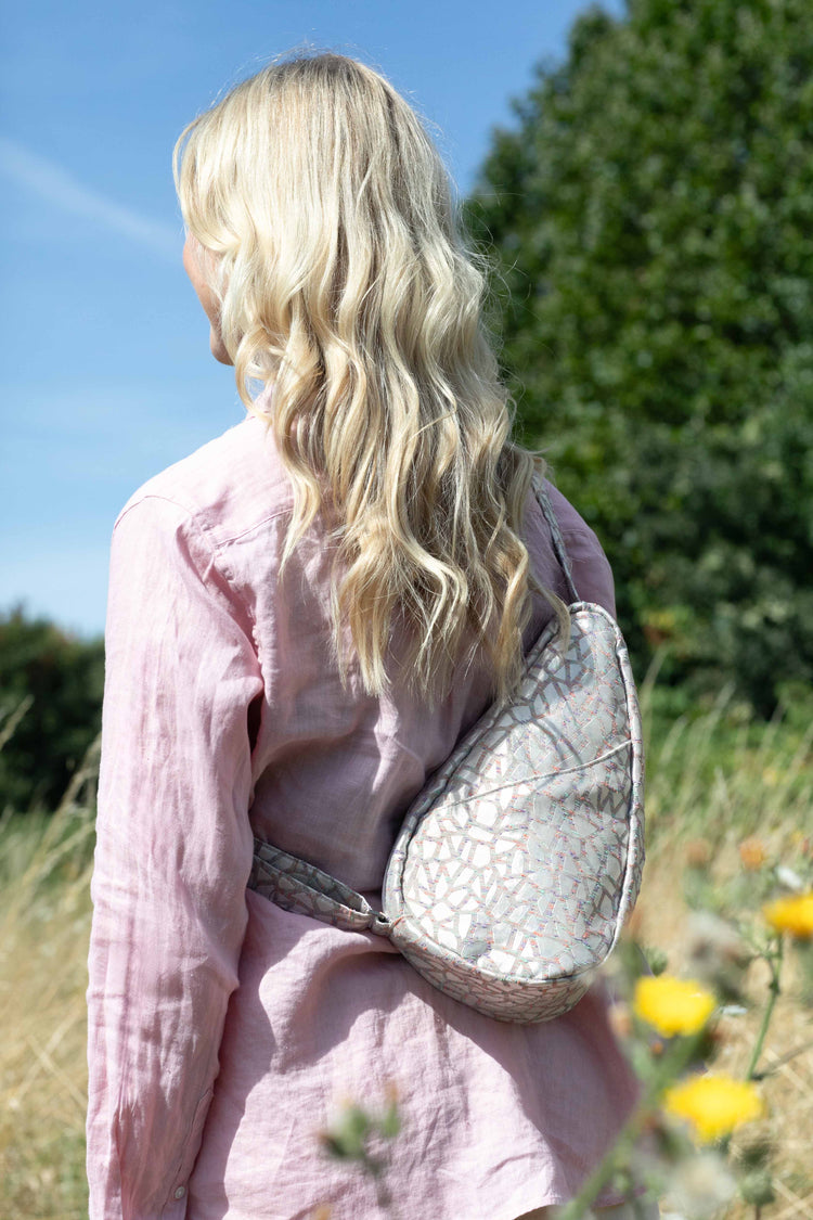 Introducing the Sling, the perfect blend of style and practicality for the busy urbanite, the weekend explorer, the dog walker, the traveller, providing quick access to the things that matter most. A shimmering, iridescent fabric with a multicoloured crackle effect. Its luminous finish will add a touch of elegance to your wardrobe.