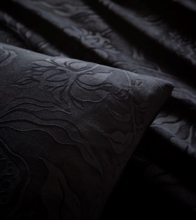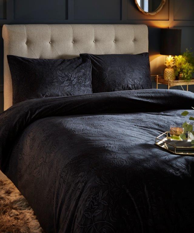 Beguiling and indulgent, this luxurious duvet cover creates a mood and atmosphere by itself. The wonderfully tactile embossed velvet features a traditional floral and pomegranate trail design, and the on-trend black colourway adds to the bewitching aura.