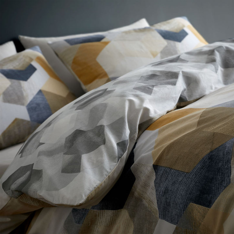 A modern geometric pattern of overlapping hexagons in earthy tones contrast against a smaller scale monotone reverse creating a bold contemporary look. Soft and comfortable in pure, breathable cotton, Bianca fine linens create a sense of wellbeing that promotes a relaxed and restful sleep.