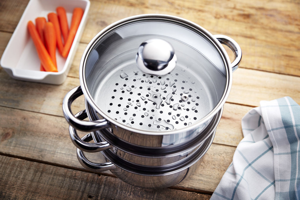 - 2 steaming tiers.