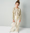 - Mid rise, wide leg trouser.