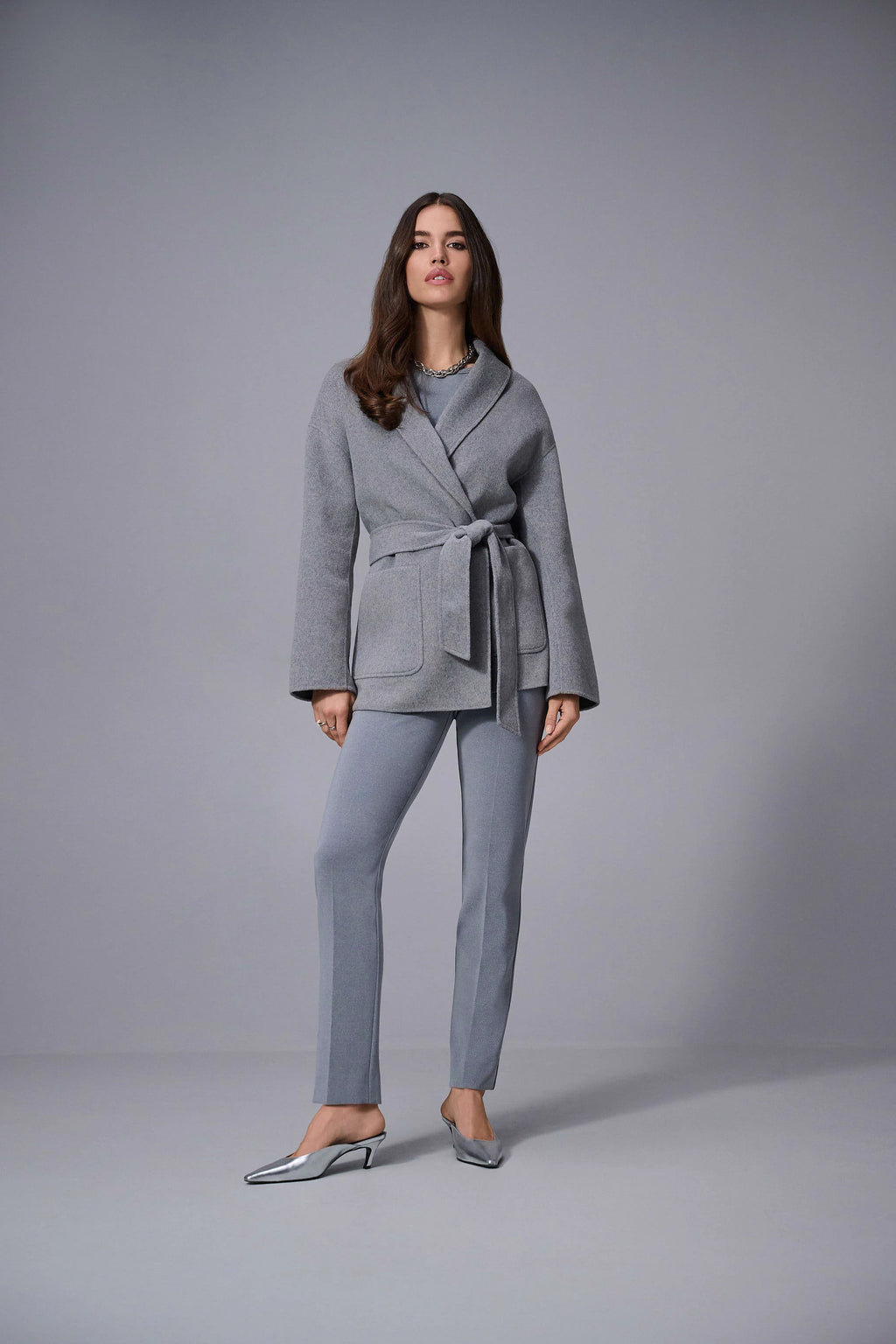- Back cut with slit at bottom hem