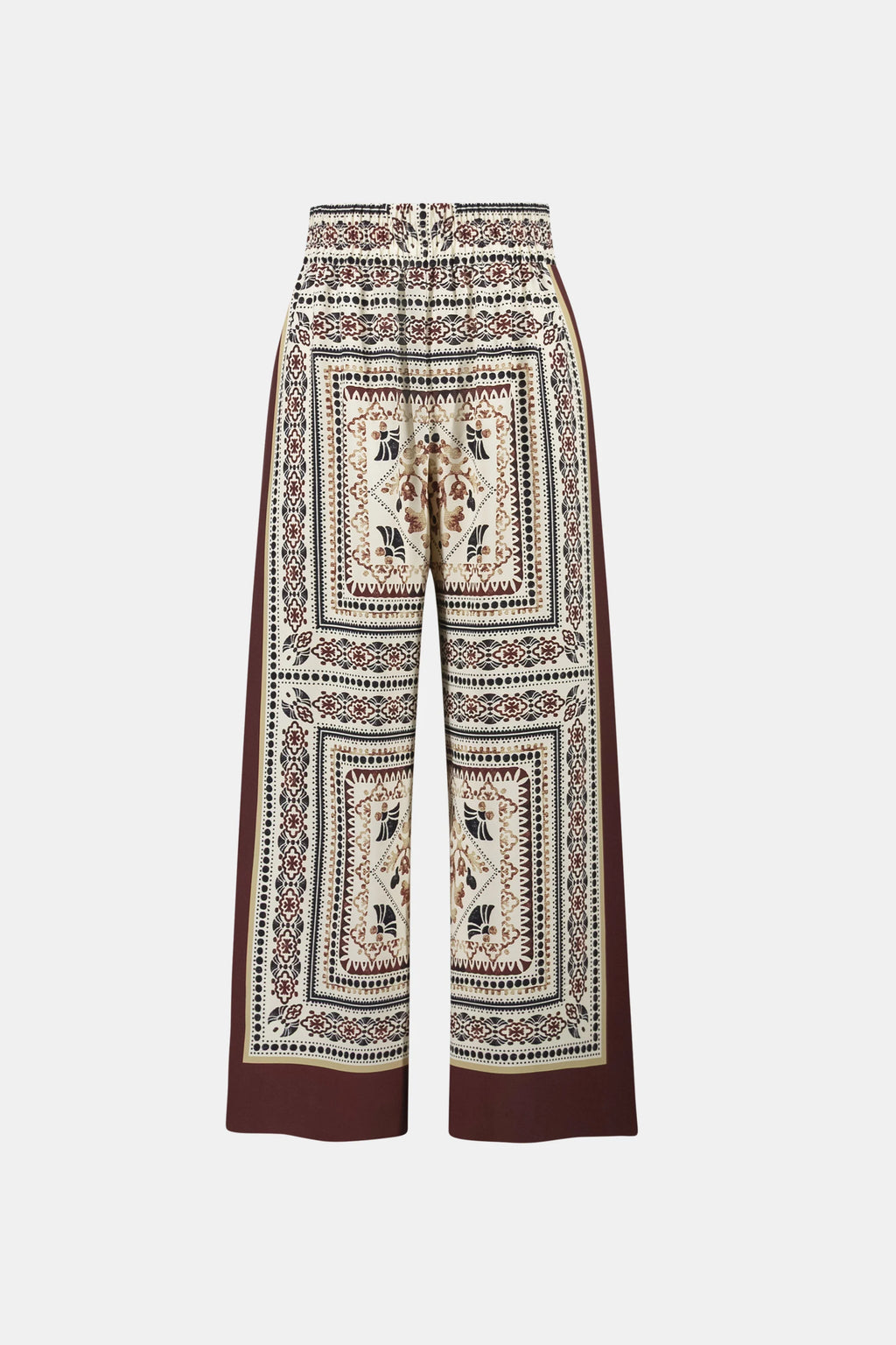 Scarf Print Wide-Leg Trouser - Beige/multi