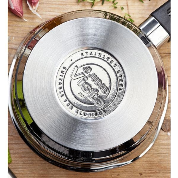 This high quality mirror polished stainless steel milk pan with the toughest, most durable non-stick is perfect for warming milk, heating soups or making delicious sauces. The high-performing non-stick means little to no oil is required, making it the perfect milk pan for a healthy diet and an easy clean. The 2 pouring lips on either side of the pan make the pouring a clean and easy task. This Judge Vista non-stick milk pan is compact in size and is therefore easily stored in any kitchen.