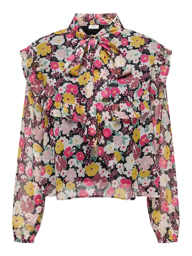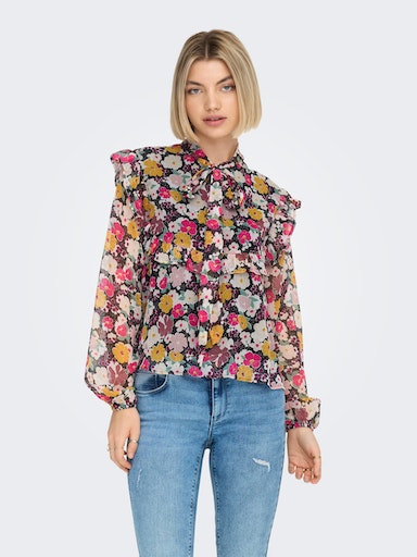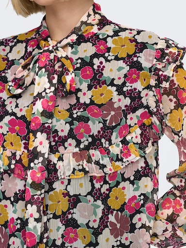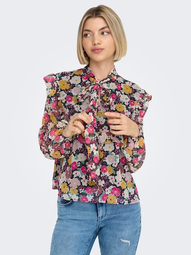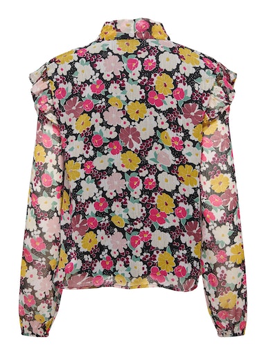 Lilli Long Sleeve Top - Black/fuchsia Purple Flower