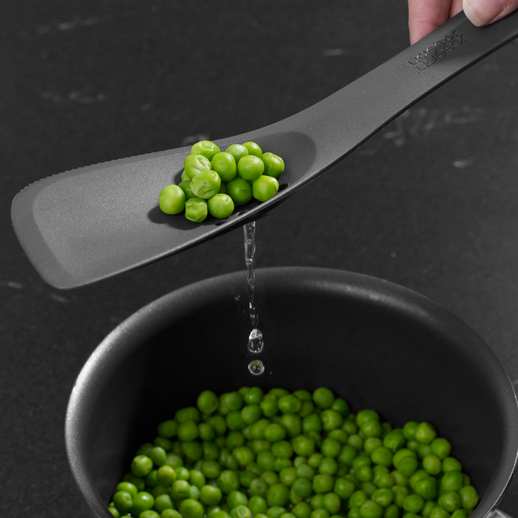 • Can be used as a spatula, slotted spoon, solid spoon, turner and cutting tool.
