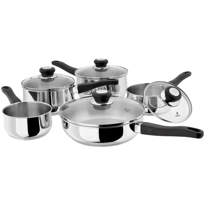 This Judge Vista saucepan set has impressive performance with even heat distribution on all hob types thanks to the 'hot forged' bases. With integrated internal time-saving measuring guides.