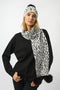 Animal Print Pompom Scarf - Winter White/black