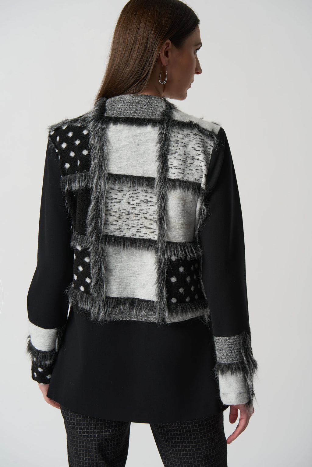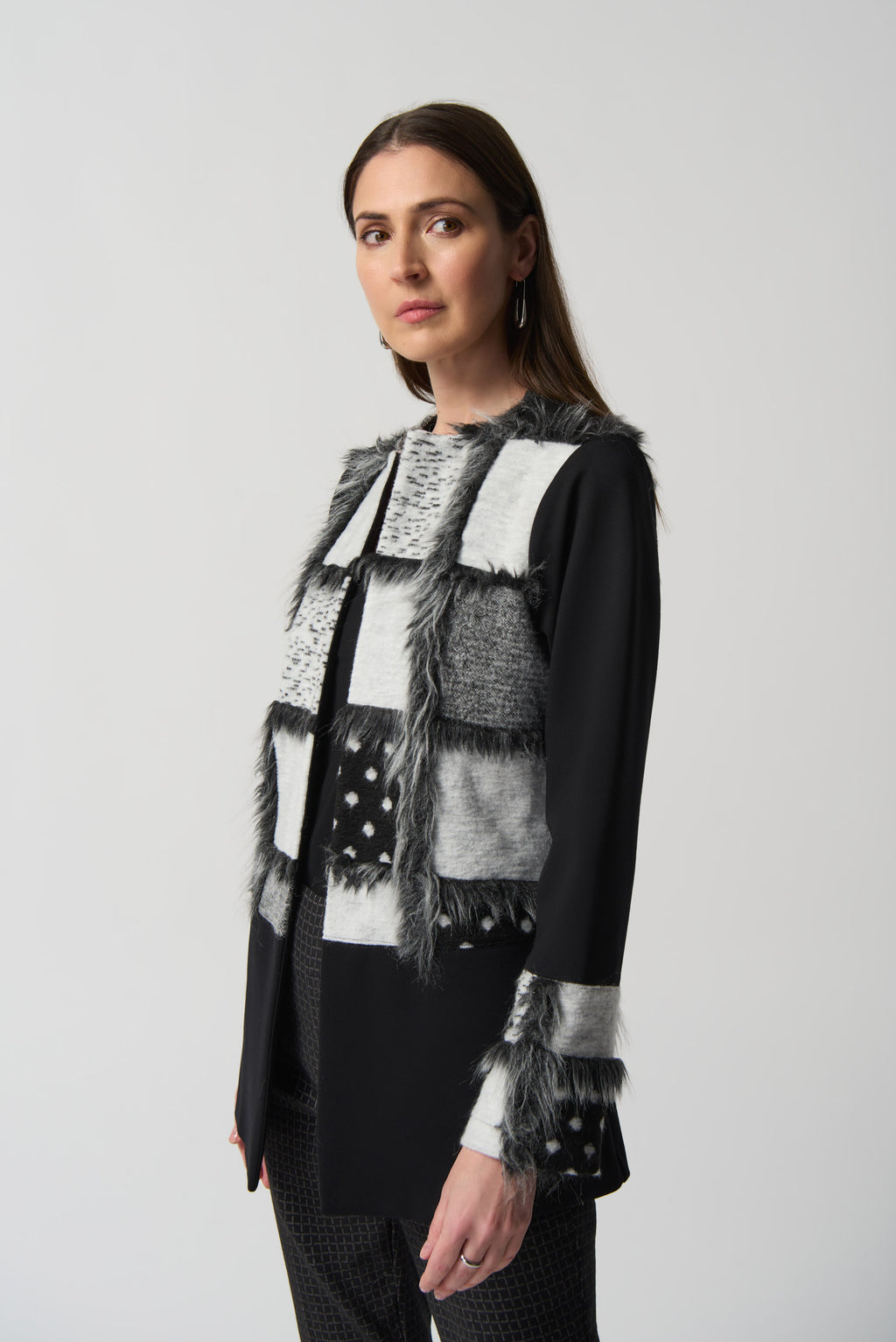 Faux Fur Detail Coat - Black/grey
