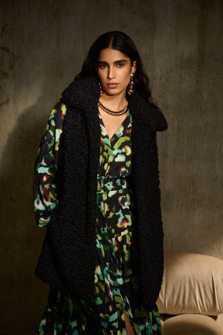 - Faux fur collar.