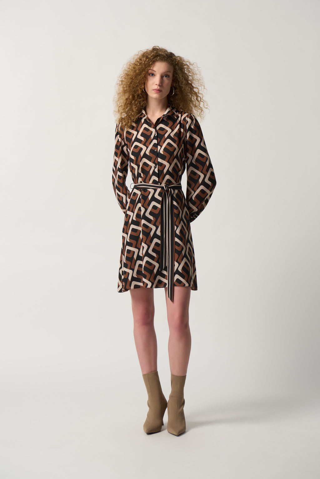 Geo Print Zip Front Dress - Black/multi