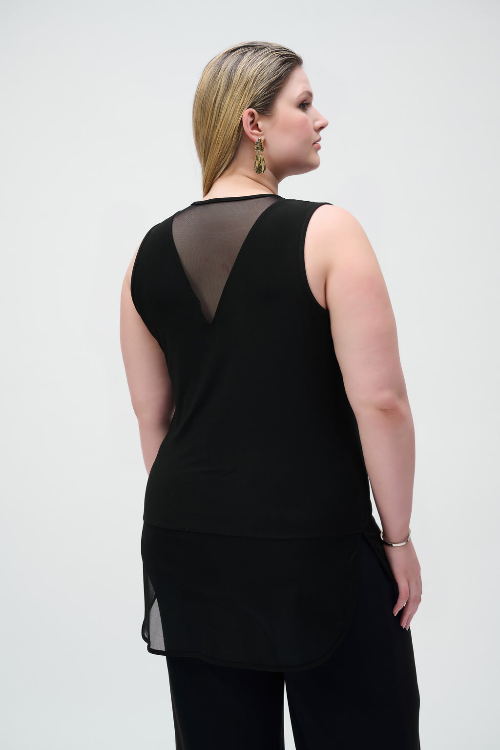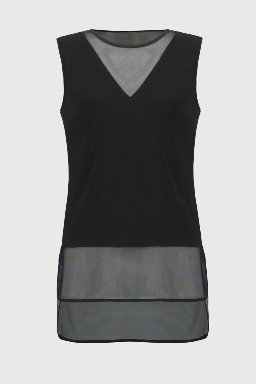 - Mesh insert adorns front and back neckline